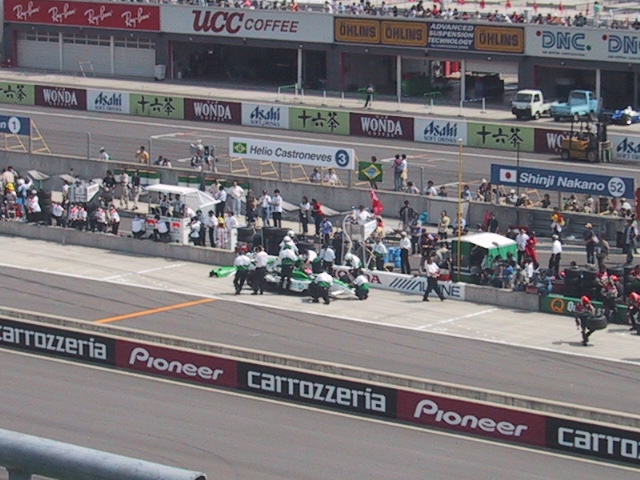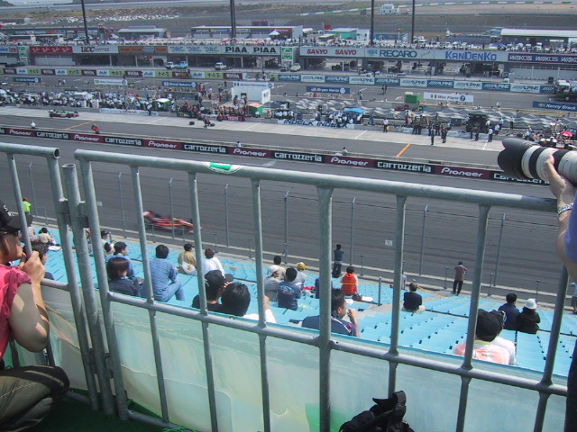 ウォームアップランにも関わらず、とんでもないスピード(たぶん時速320km以上)でかっ飛んでいくのが凄かった。ピットインも繰り返し行われたので、デジカメでも撮りやすかったけど、なにぶん望遠機能がイマイチなので見にくいですよね。